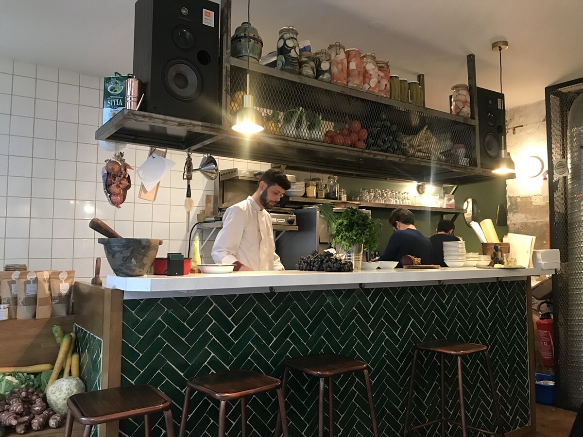 出國在外,大多數的人都習慣也喜歡吃家鄉菜和亞洲食物,思鄉情懷和口味問題,但在我身上,反而沒這樣的困擾,對入境隨俗接受度非常高,相對的,我偏愛西式料理。 歐美國家對於有機食物和輕食料理很講究,選擇也很多;我本來想介紹一件有機小餐館,它的食物以各式穀類雜糧為主,調味也非常清淡,幾近食物的原味,但一般很少人像我吃的這麼清,所以這裡介紹另一家我也很喜歡的健康食物,以Tapas的形式為主,稍微口味重了(應該說鹹度適中),但廚師加了異國風味來做口味上的混合創新,所以味道非常的融合,尤其是花椰菜這道,不要被焦黑的外表嚇到而不敢吃,它是我最推薦的一道小食。 我和朋友點了一道主食,其他選些小食做搭配,這樣的食物選擇是我最愛的,因為可以吃到很多味道,又不會吃不完,非常符合我嚐鮮的個性。 在這家店,不用擔心語言問題,店員的英文非常好,而且非常的熱情介紹每一道食物的內容,聽店員說,晚上基本上都要排隊,而且也能小酌,可見巴黎人多愛這類食物的小餐酒館。
