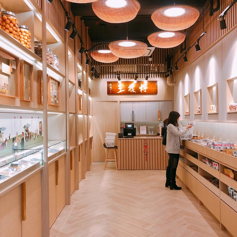 裡面採用木頭裝潢,看起來乾淨明亮。店裡一邊以展示為主,包括老店的舊照片以及蜜餞的裝飾擺設,產品則集中在另一邊陳列,位置寬闊,選項也更一目瞭然。