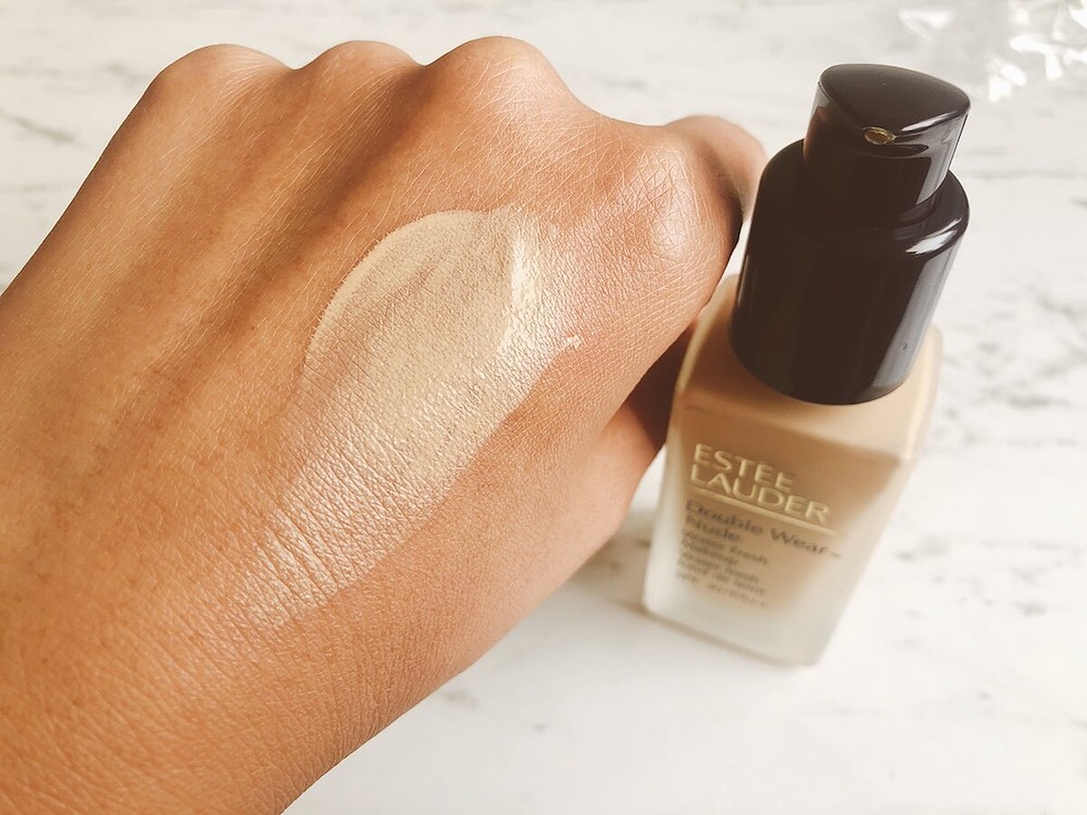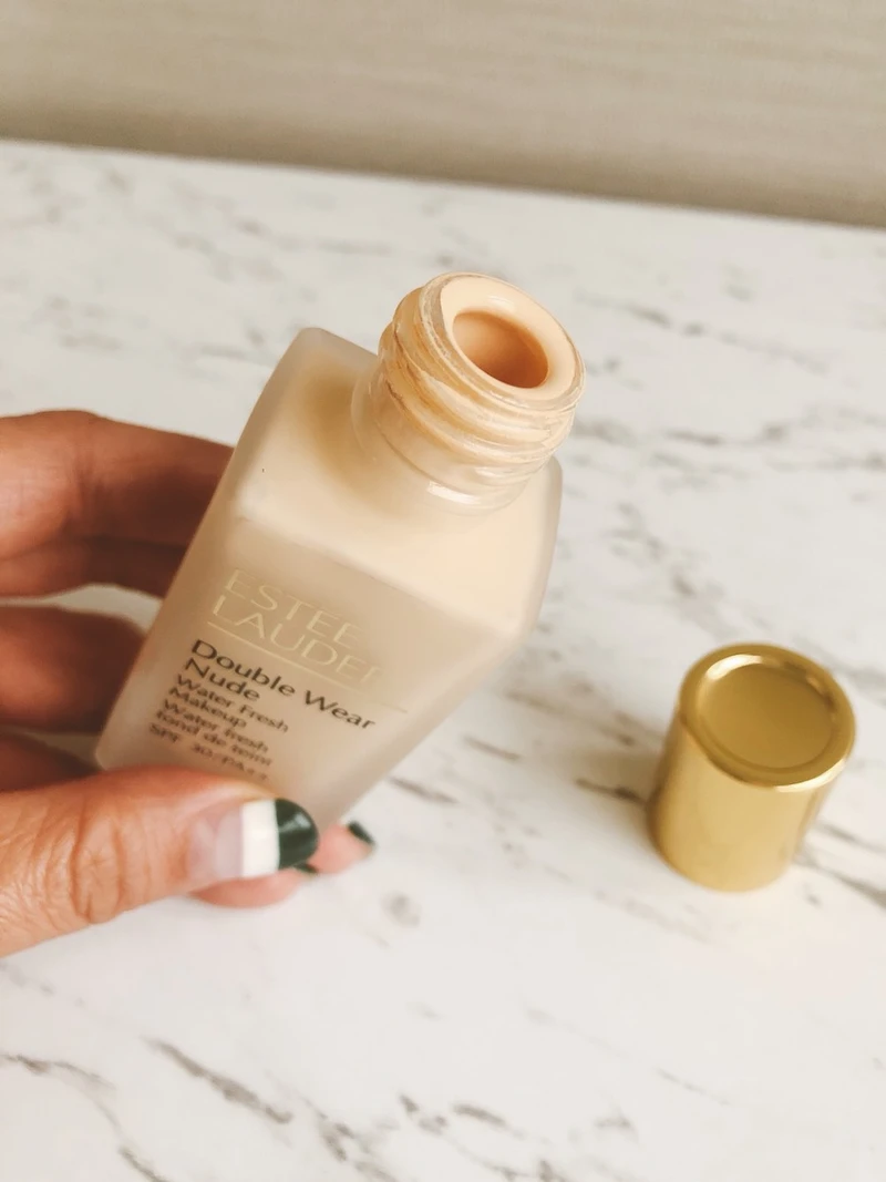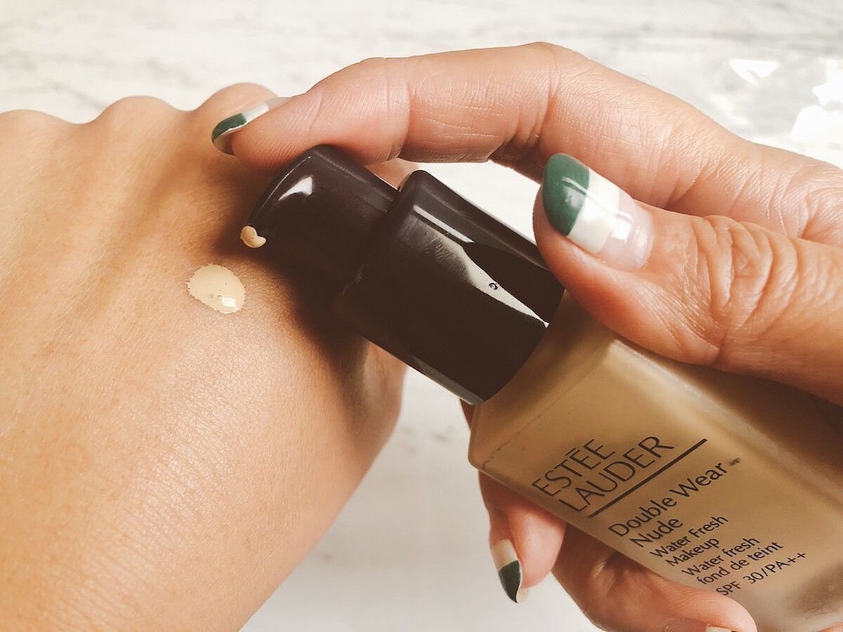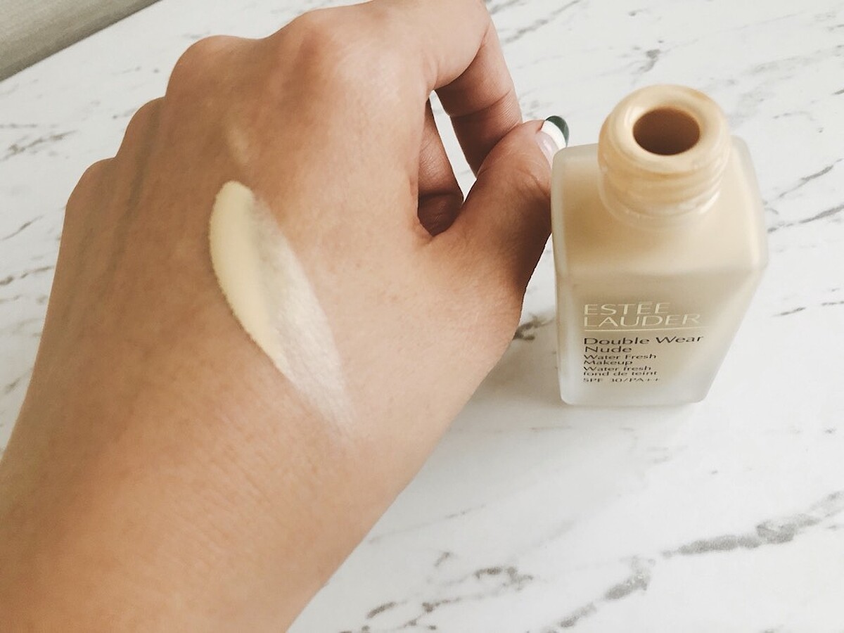 去年秋天發現雅詩蘭黛推出了一樣來自[粉持久粉底家族]的新成員—-粉持久微霧光澤水粉底後,就很好奇新的水粉底能不能像過去的完美持妝粉底一樣持久,然後還要能夠達到我對自然裸肌妝感的追求?當時剛好倫敦新上市有索取一週試用品的活動,我就先靠櫃試試了!一抹在手上就發現這瓶粉底真不虧它稱為水粉底的名號,英文名為Nude Water Fresh ,果真是夠水、夠裸、夠清新!