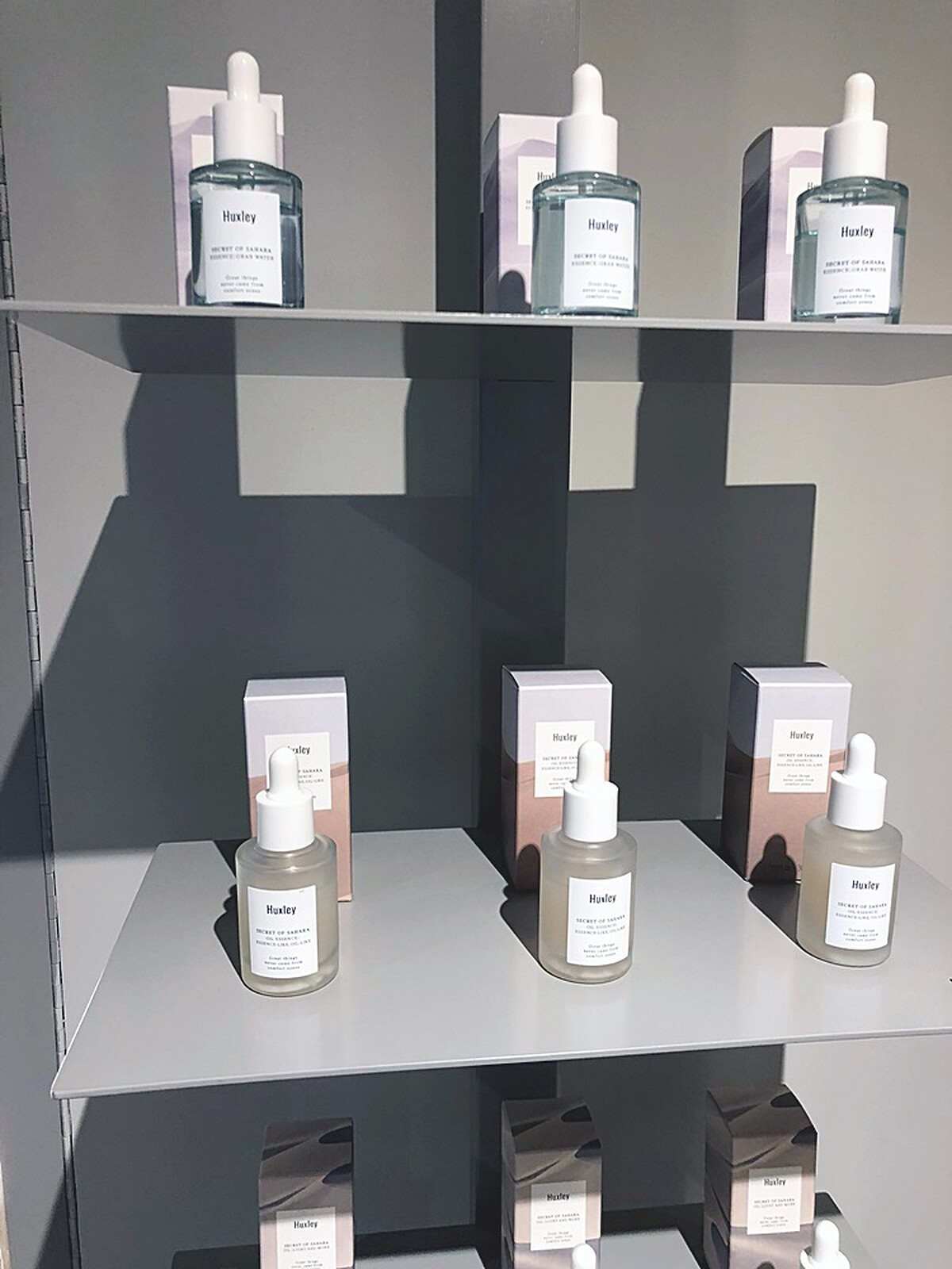 這次到Huxley在新沙洞的Show room就很期待能夠完整的體驗他們每一樣商品(地址是서울 강남구 압구정로12길 42-1 2F),尤其是品牌的明星商品仙人掌籽油,以膚質分成三種類型Oil Essence(一般肌膚)、Oil(乾性肌膚)與Essence(油性肌膚),最受歡迎的Oil Essence不但清爽好吸收,完全沒有黏膩感,也有立即的保濕度,味道也很清新自然!