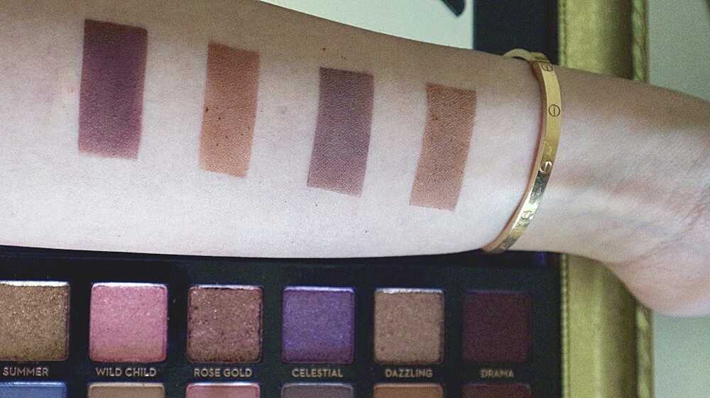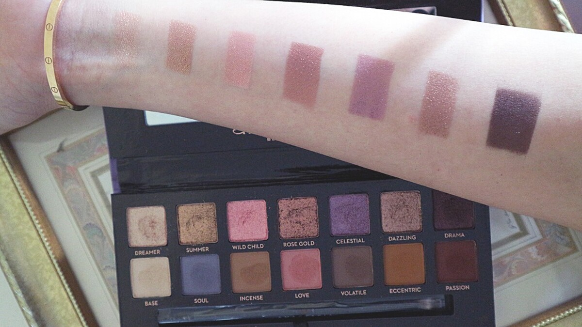 「Norvina」金屬眼影從左到右:「Dreamer」、「Summer」、「Wild Child」、「Rose Gold」、「Celestial」、「Dazzling」與「Drama」