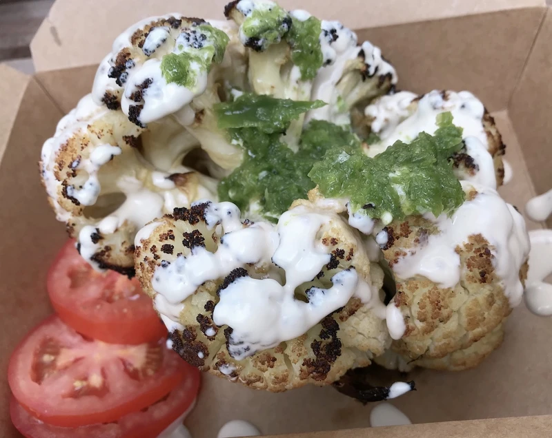 Kapara,這裡吃得到小農的用心,所有的食材都是《有機和農場直送》。另外,網友一致激推的就是–整顆烤花椰菜,一上桌就讓人一見鐘情,馬上拿出手機,拍!拍!拍!用「Josper」烤箱,先炙烤到金黃色,再撒上海鹽、淋上橄欖油及調醬,微酸中透出花椰菜的爽脆甘甜,好吃又健康!也供應整顆烤茄子及超Q彈Pita餅,值得一試。