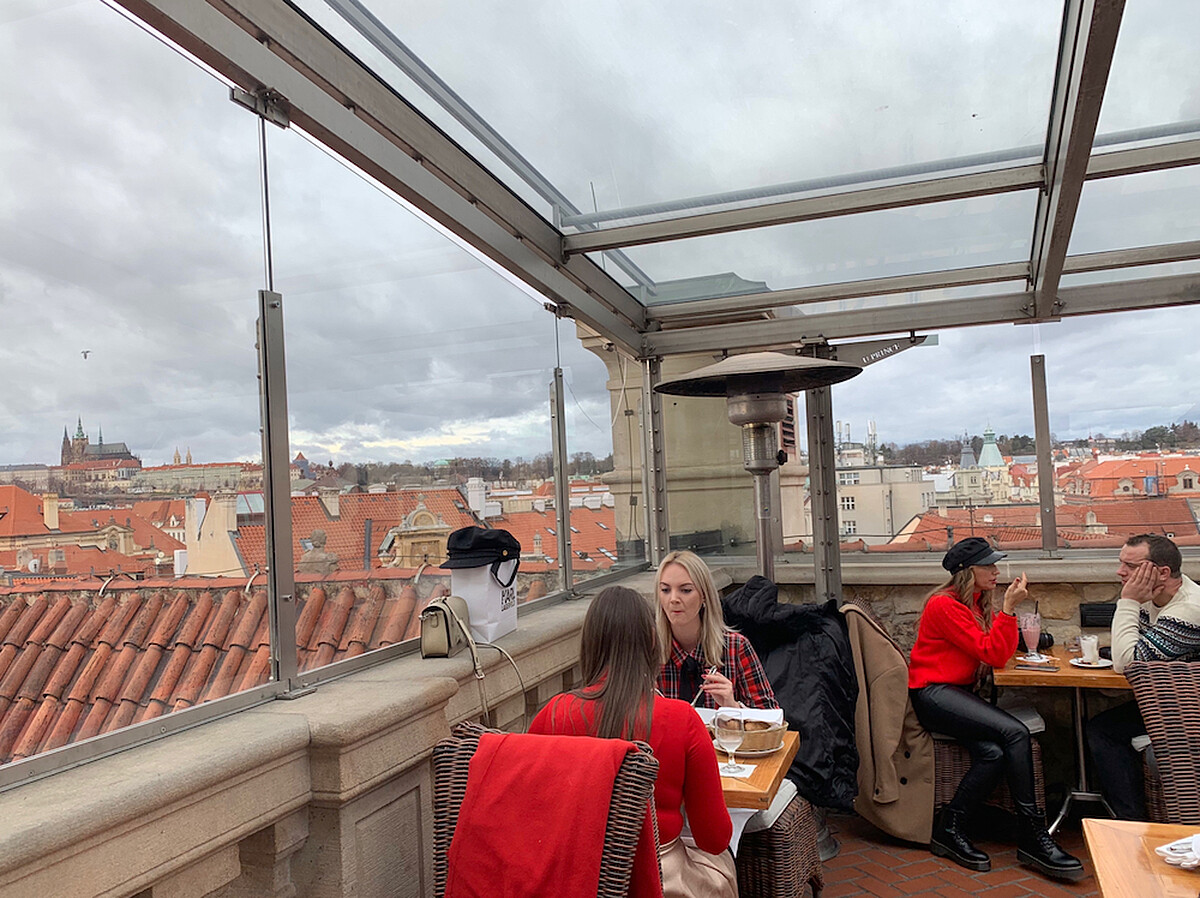 累了餓了,就來這裡休息一下吧。這間餐廳是Hotel u Prince的屋頂。對!沒聽錯,屋頂=露天,但你完全免擔心室外的天寒地凍,這裡冬天會變成「透明玻璃屋」,如果運氣好遇上下雪的聖誕,一片片飄落的雪花,絕對能滿足你對「白色聖誕」的幻想。