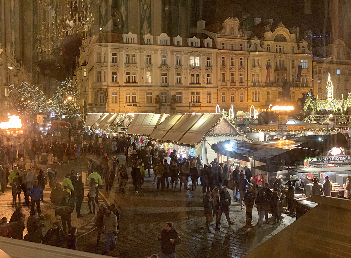 為什麼?布拉格最熱門的打卡地標–天文鐘,跟我面對面相見歡啦~我完全免吹風人擠人,爽坐在這,喝咖啡吹暖氣,欣賞天文鐘整點報時;同時也看得到聖誕市集的熱鬧氣息。預算足夠的人,更可吃頓“莫札特晚餐音樂秀”,也是一種不錯的選擇!(我好怕介紹後就會一樣人擠人了?!)