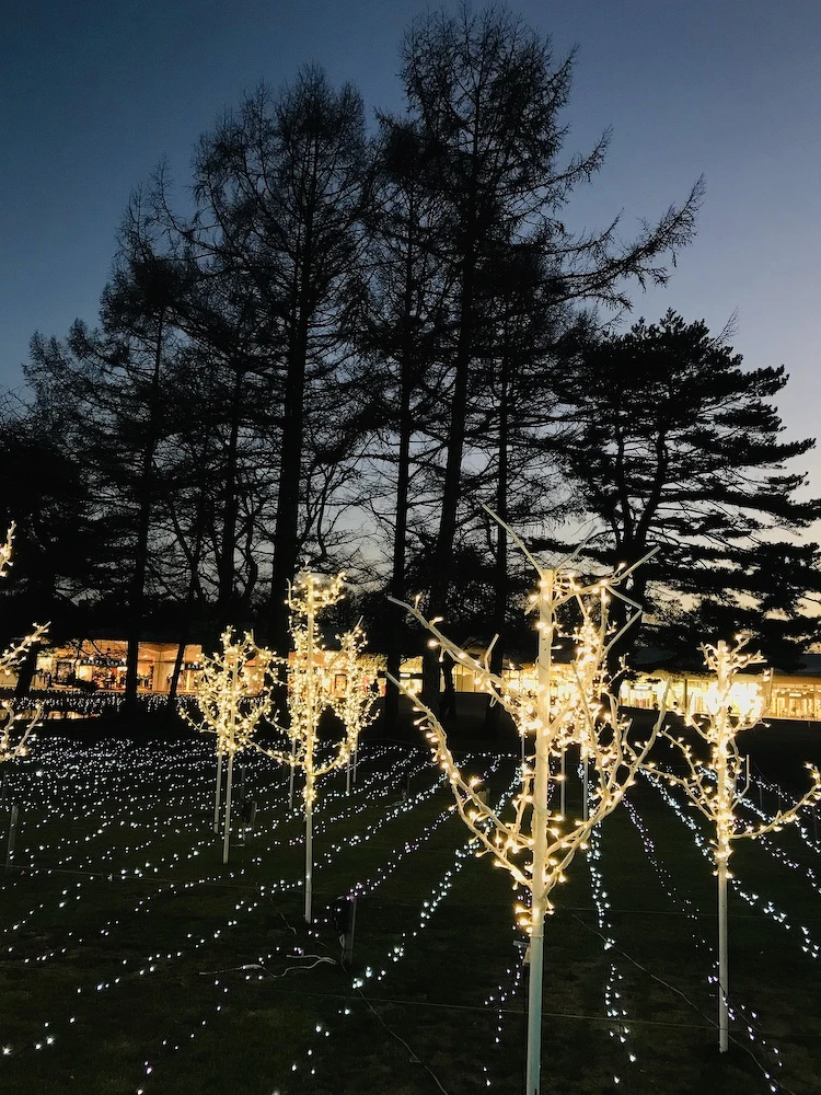 此起彼落的山間林木,森林中每個角落都充滿優閒氣氛,加上五彩繽紛的彩燈,宛若寶石般璀璨又聖潔~~