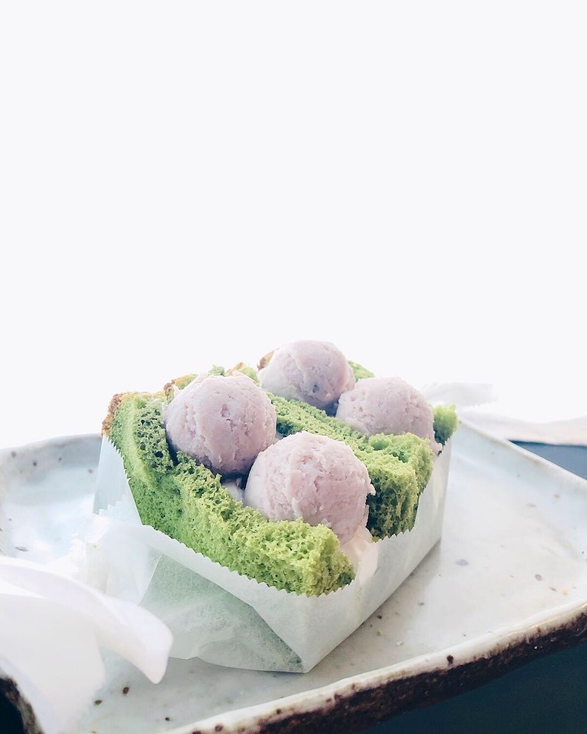 當然,IG上爆紅的戚風三明治絕不能錯過!小旺笑說靈感來自店裡的芋頭狂熱份子女孩,誤打誤撞意外和抹茶戚風很搭,於是推出蒸蒸芋泥抹茶三明治,清新柔軟的抹茶戚風、飽滿綿滑芋泥球,再搭上鮮奶油,擄獲少女們的味蕾!