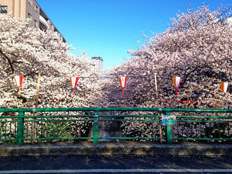 目黑川就是關東櫻花的代名詞,從中目黑到池尻大橋約3。8km,沿著目黑川兩岸種植了約800顆染井吉野櫻,加上兩岸時尚的雜貨店及餐廳,每到開花季節這裡總是吸引大批賞櫻人潮。