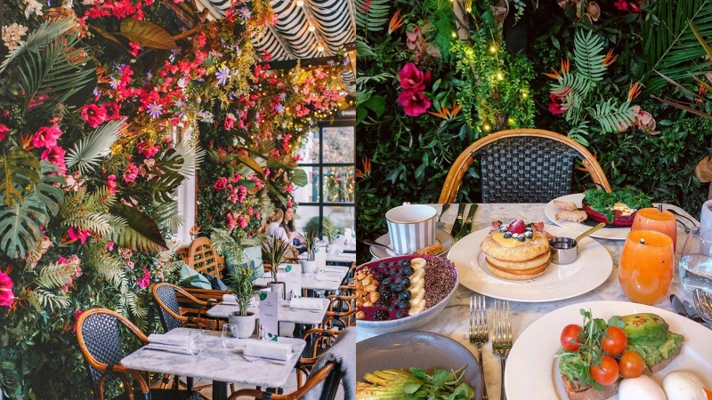 顧名思義,這裡其實是附屬在Bloomsbury飯店的一個陽台,爆紅的關鍵就在於每個季節他都會更換場佈,幾乎是以土豪方式將大把鮮花安插在背景,讓每個在陽台用餐的顧客都能吃好拍滿,不過也因為座位有限,想要搶到王位拍照感受一下本次的#SpringJungle主題,請務必一定要事先訂位,並且附註安排陽台位置,才不會白跑一趟,我上次就是沒訂位去,在室內等到花兒都謝謝了也輪不到,只好收拾行囊回家看大家美照,安慰自己也沒多美嘛(明明就很想拍)。