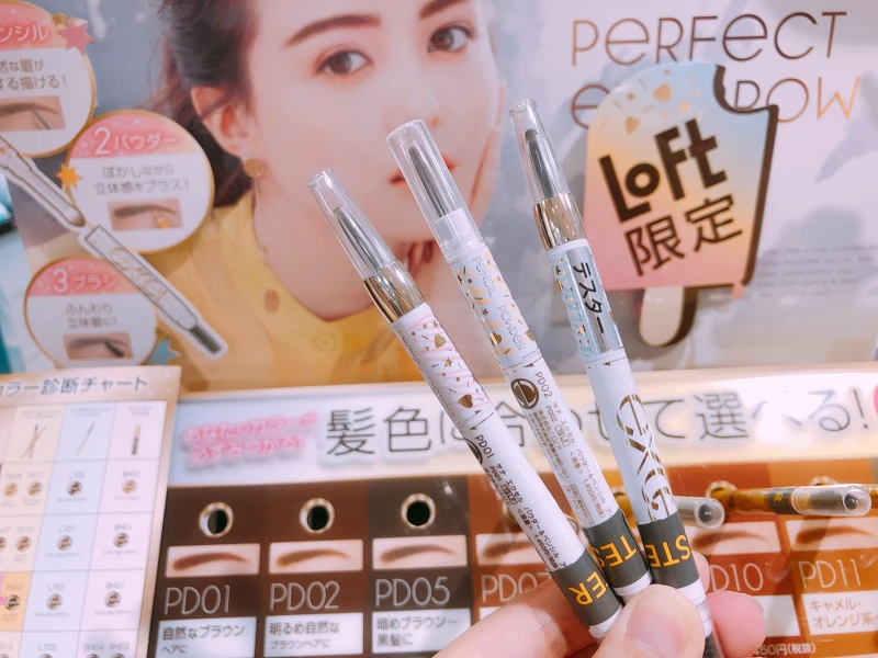 excel的三合一眉筆好用出了名!在日本LoFT更推出了「限定版包裝」,分別有PD01自然棕、PD02焦糖棕、PD05炭灰棕這三色。
