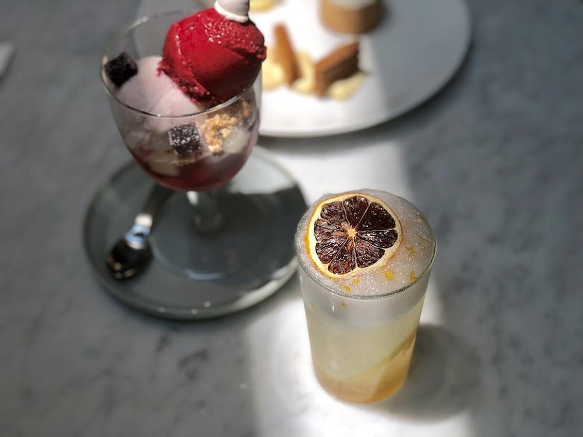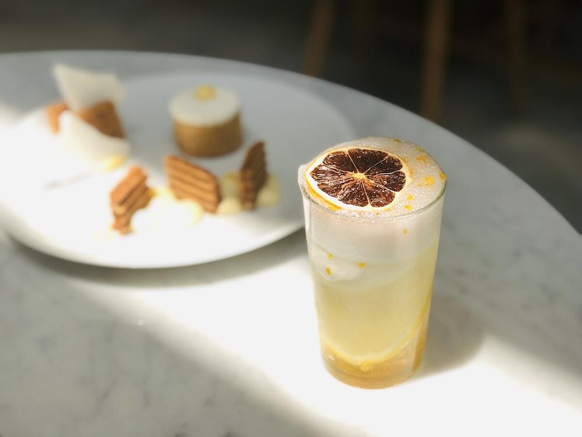 以西班牙柑橘、佛手柑果醬調配,驚艷地藏入檸檬雪酪,上頭的糖漬&乾燥檸檬片,增加味蕾的豐富性。一杯飲料,也足以感受主廚的用心創意。