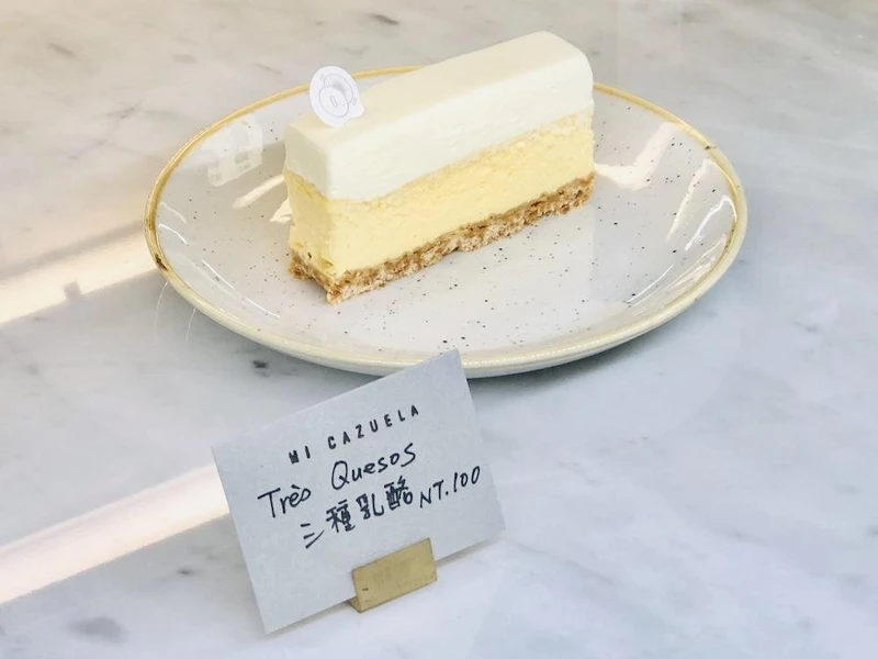 來自於南美洲的靈感「三種乳酪」,將哼利喜愛的紐約東村烤重乳酪蛋糕,疊上輕盈的生乳酪,上桌前,再放上如雲朵般的白乳酪,每一重的堆疊都蘊含著哼利與星星旅行生活的軌跡。