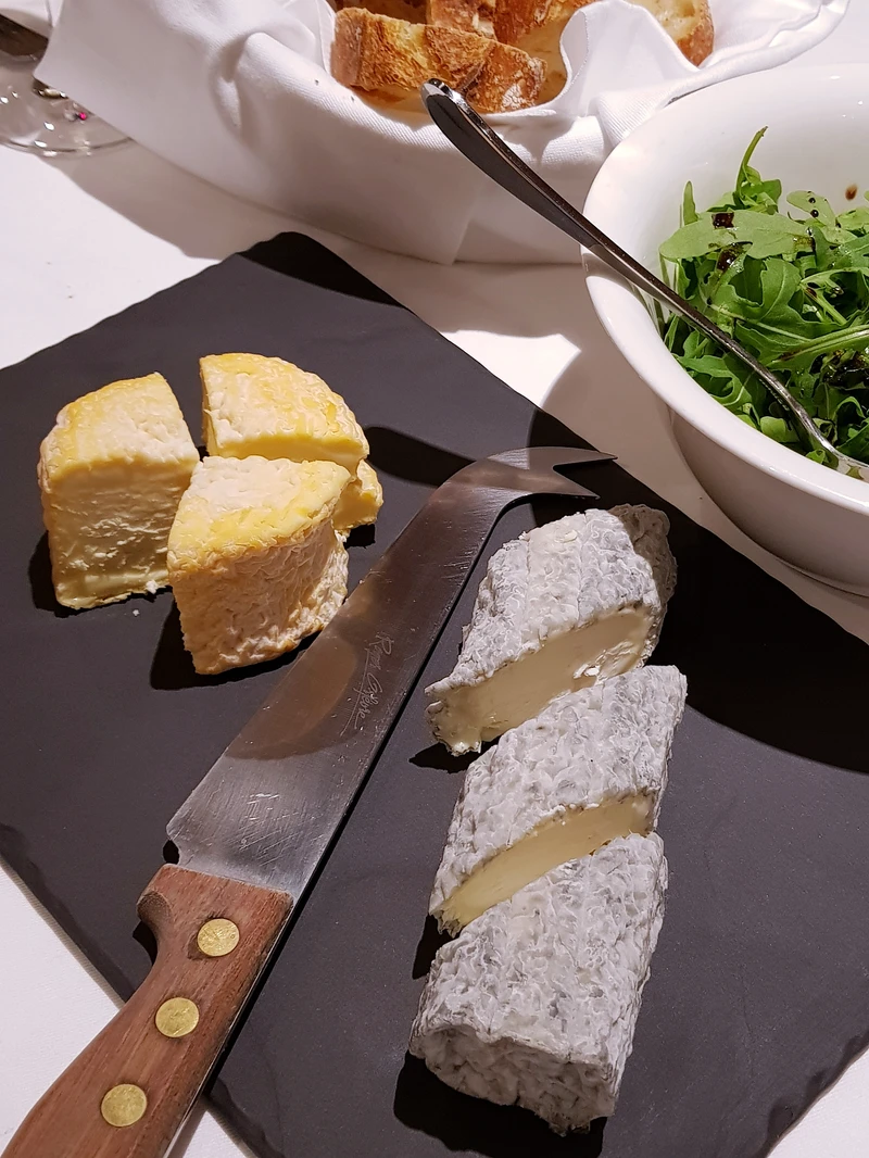 我還記得第一天在晚餐前,他們先把所有的乘客聚集在船上大廳,一一奉上一杯香檳後,船長和我們介紹船上的工作人員和說明安全教育外,也相互介紹來自各地的遊客,像個小小迎新派對,輕鬆又愉快。隨後,馬上展開三道式的晚餐搭配美酒,標準的法式經典美味,味蕾的驚艷,讓人甚是心喜。其中當晚最讓人念念不忘的,則是晚餐後最的「起司盤」,出現兩個非常別致的起司(奶酪)。一個是長圓筒狀外表灰藍色的羊奶酪「都蘭 -聖摩爾(Sainte-Maure-de-Touraine )」,口感爽滑、軟質稠密,而且帶點微酸。最特別的是在奶酪中間穿過一根麥稈,聽說是為了防止奶酪因過於脆弱而破碎,也是他們的認證特色,非常有趣;而另外一個外表有如著金黃色皺褶的「朗格勒乳酪 (Langres)」,來自法國香檳亞丁地區的朗格勒高原,內部質軟如膏狀,氣味較強烈,而且帶微鹹,抹在麵包上,再來上一口香檳,非常的搭。就這樣,眼前的河輪突然化身為自家的餐廳般讓人放鬆自在,還有私廚般的享受氛圍,實在是讓人開心。