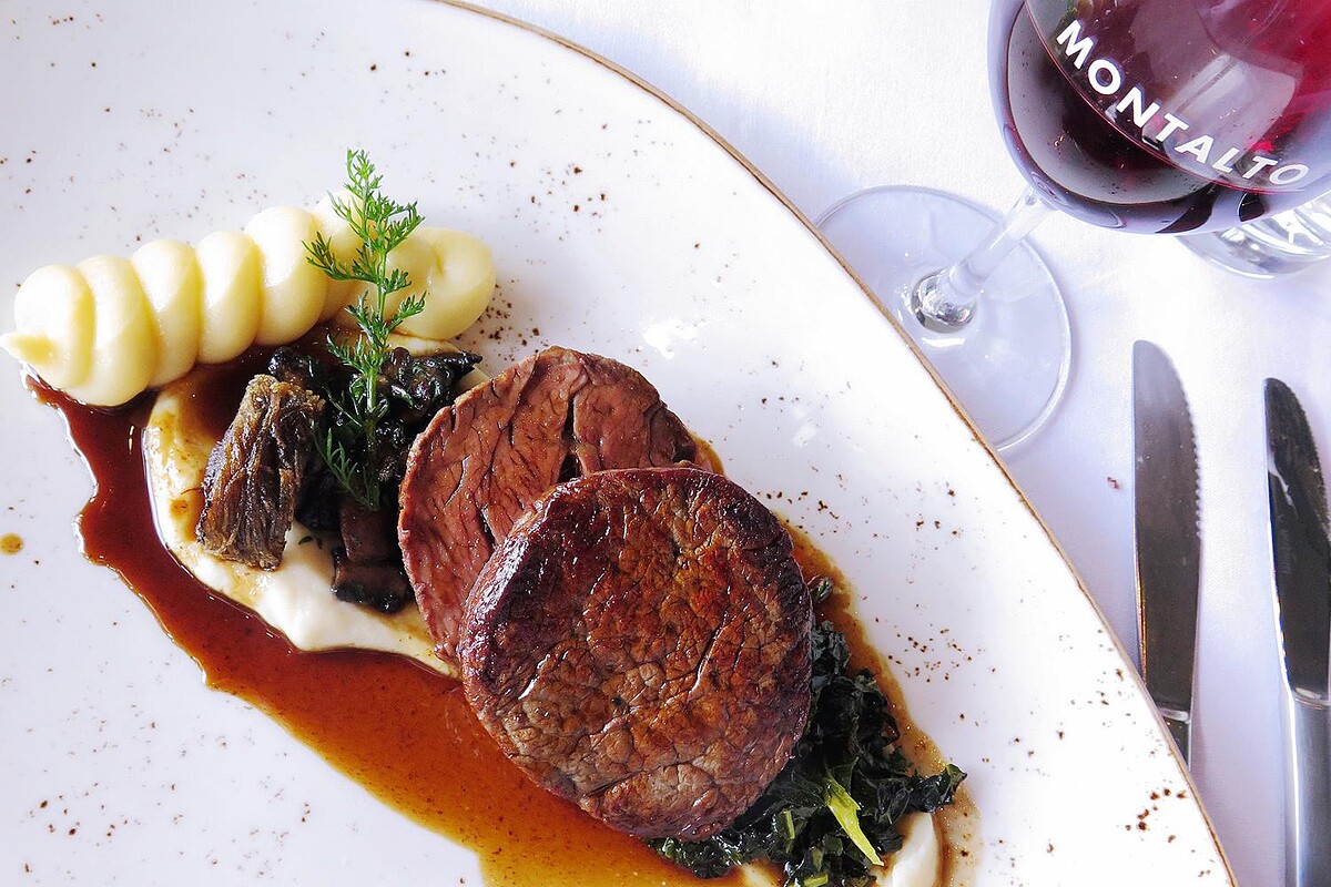 而我在「Montalto酒莊」品嚐他們家的葡萄酒時,和工作人員小聊了一下,才知道澳洲的葡萄酒從1788年英國菲力普船長將第一株葡萄樹種植在雪梨植物花園(Botanic Garden)開始至今,雖然才2百多年,但是拜氣候和土壤所賜,澳洲目前已是世界第四大葡萄酒出口國,也是新世界產區葡萄酒的重要代表。至於雅拉河谷的緯度和風土更是別樹一幟,特別適合黑皮諾葡萄的栽種。所以有了這個優勢,澳洲維多利亞省的黑皮諾紅酒,也被眾多國際知名酒專們譽為唯一可以和法國勃根地匹敵的黑皮諾紅酒了。不過,維多利亞省的黑皮諾紅酒除了自然元素和口感的優勢外,對於消費者而言,最大優勢則是它的售價要遠比法國平價親民許多啦!這點,我是一邊歡心品嚐手中的美酒,一邊點頭如搗蒜啊!