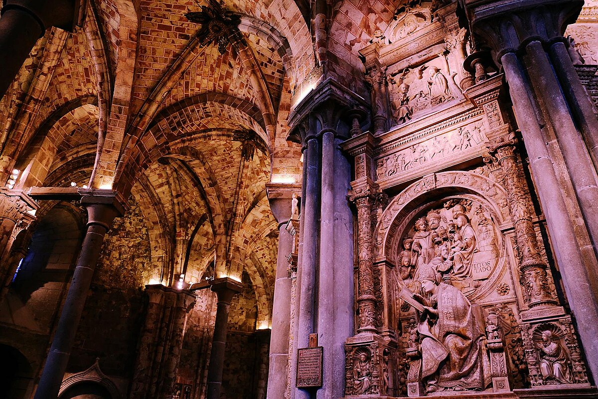 再來,到阿維拉教堂一遊,千萬不要趕時間,一定要花點時間慢慢地參觀、欣賞。因為在教堂裡面保存了非常多文藝復興風格的精緻雕刻、裝飾和精采的藝術作品等,都非常值得細細品味。其中位於教堂中央以基督一生為主題的主祭壇屏風,是西班牙知名風格主義大師阿朗索·貝魯格特(Alonso Berruguete)的父親,也是文藝復興時期歐洲知名的藝術大師西班牙宮廷畫家佩德羅·貝魯格特 Pedro Berruguete 的傑作,歐洲藝術珍寶;此外,就算你對歐洲藝術歷史,又或是那些大師們的名字、風格都不熟悉,這也不要緊。只要把心靜下來,看看那浮雕、畫作上的細節,色彩、表情的演繹,還有雕像旁那細膩的針、線雕功等。再想想眼前的這些都已經有了數百年,甚至近千年的歲月,卻依舊保存如此完整,那藝術和工藝美學無形的力量,就會讓你驚歎不已,大讚值回票價啊!