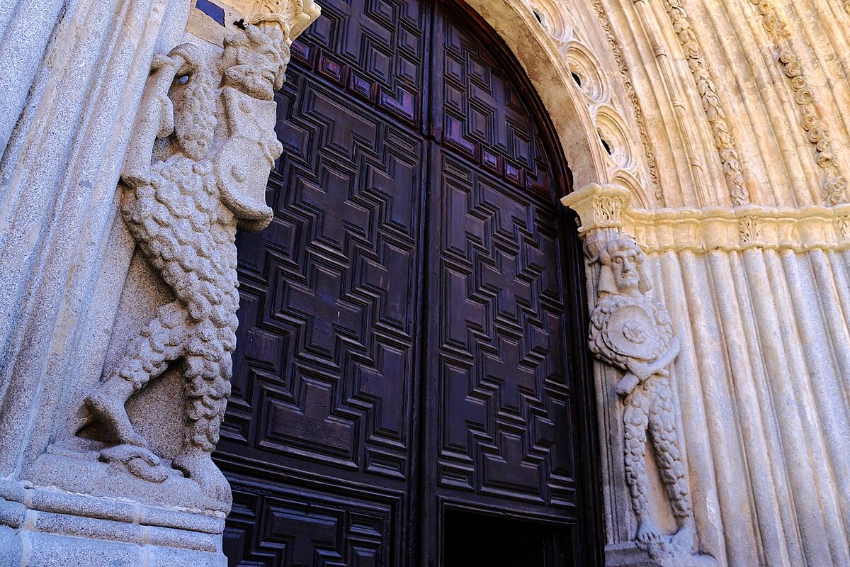 老實說,我旅遊歐洲十多年,訪盡了無數的教堂,對於宗教的故事熱忱平平,倒是教堂的藝術美學常常讓我驚喜萬分。特別是西班牙的美學,不是刻意裝飾的浮誇和距離感,而在傳統和經典中,總是可以輕易看見生活的真實感動。眼前這座建於12世紀的阿維拉大教堂,外觀是由樸實又莊嚴穩重的灰色花崗岩搭建而成,乍看下雖不起眼,而且前面也沒有一般歐洲教堂常見的大廣場,但是在入口處的門牆石像上,便開始透露出她那非一般教堂的美學拼圖訊息,著實吸引著我的好奇心。
