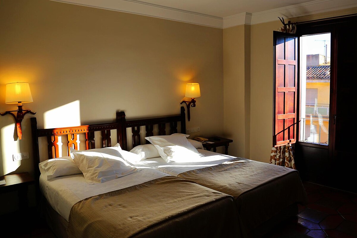 我還特別喜歡他們雕花的石牆、天花板上橫架的古木,以及偶爾出現的中世紀盔甲,還有那戶外的庭園座椅。近看是古董藝術,遠看則是西班牙貴族的生活品味。雖然說自己當不了西班牙的貴族,但是來到這,至少可以花一個晚上的時間,買一個貴族品味的時光和夢想,而這就是旅行最有趣的地方了,不是嗎?