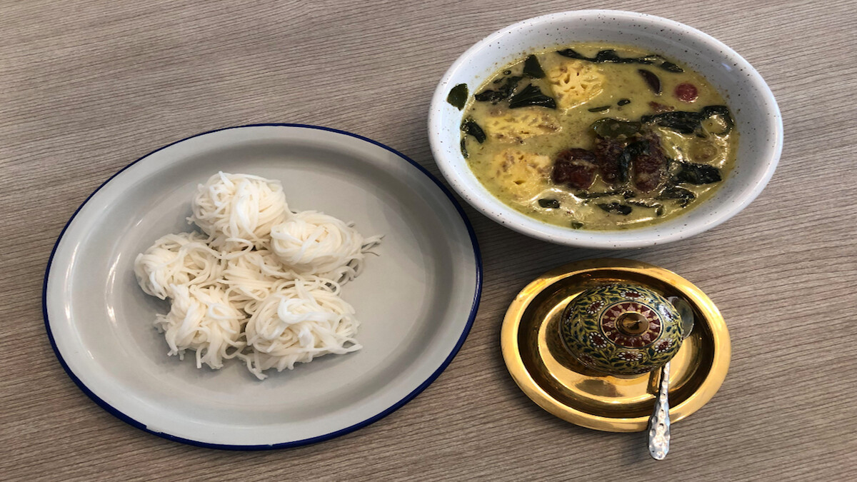 接著上來的泰式烘蛋丼飯和綠咖哩鴨肉,只能說這兩道表面上看起來很平常,但味道卻一點也不馬虎的料理。烘蛋裡因為有鴨蛋所以蛋香味非常濃郁,平常喜歡吃蛋料理的人千萬不能錯過的一道菜。綠咖喱鴨肉裡的椰漿,也是女主人手工製作的!