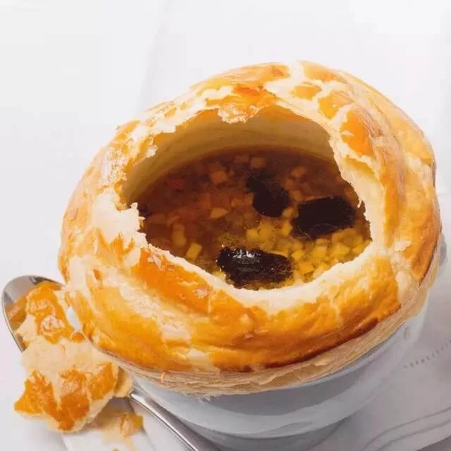 最負盛名的「季斯卡黑松露酥皮湯」(Soupe Aux Truffes Noires V.G.E.),則是一九七五年二月二十五日,在法國總統官邸艾麗舍宮為季斯卡總統設計,酥皮下並非常見的玉米濃湯,而是牛肉清湯、肥肝、松露與蔬菜。這場餐會其實來自於一個玩笑,當年是包庫斯連續拿下三星的第十一年,一天收到總統府的邀請函,要頒給他國家勳章,竟是朋友開的玩笑,當時總統季斯卡得知後將計就計,邀請他與他的廚師朋友到總統府艾麗舍宮做菜。那次共六位廚師聯手,主要菜單由包庫斯、Pierre et Jean Troisgros、Michel Guerard、Roger Verge設計,包庫斯負責湯品與甜點。為了不讓味道濃郁的黑松露香氣在空中飄散,保羅.包庫斯以酥皮將鮮味鎖在湯碗裡,喝湯得從上方先把酥皮挖破,就能確保香氣不會散失。