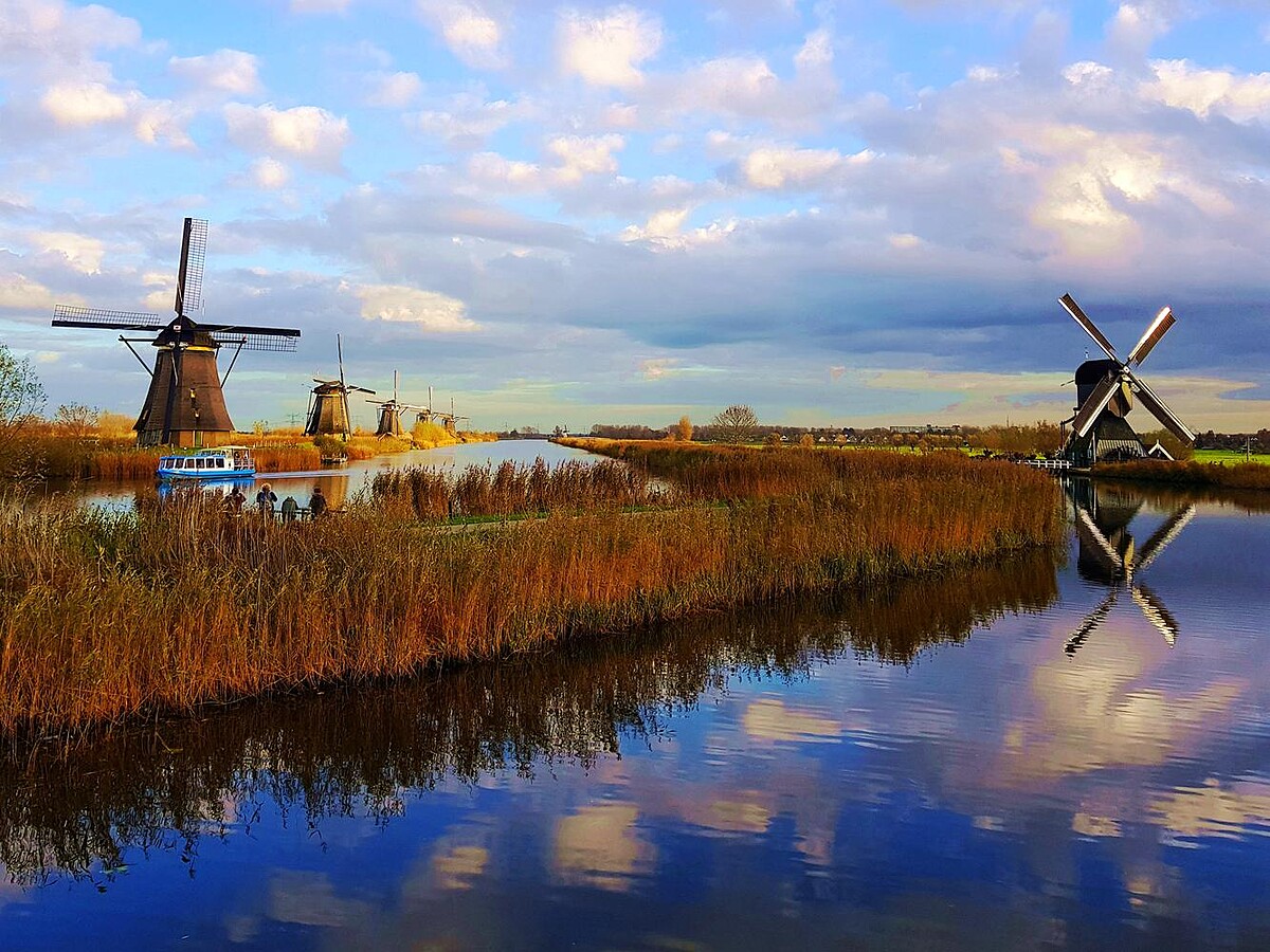 此外,來到了鹿特丹,就不得不到鄰近的世界遺產「小孩堤防( kinderdijk)」一遊。雖然說荷蘭以風車著名於世,整個國家處處有風車可看,但是要一次看見龐大數量聚集的風車群,而且還是保有傳統風貌的19座,那只有到小孩堤防別無他處了。我還記得很清楚,那一天我搭船到小孩堤防的碼頭時,天氣還是微微的陰冷,我漫步在堤防,一邊遠遠的看著河畔的風車和鬧熱開心的遊客們,才不過一會兒的功夫,這天空像是施了魔法般,一下子露出了溫暖的陽光,轉身,又用金光把雲彩映出一片粉紫,那風車順光、逆光,都各自精彩。而當風兒越吹越烈時,騎著腳踏車呼嘯追逐雲彩的小孩們,乘風而過的嬉笑聲,像是在告訴我旅行的美好,好不美麗。