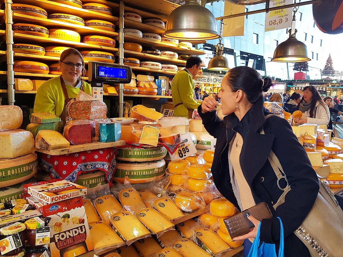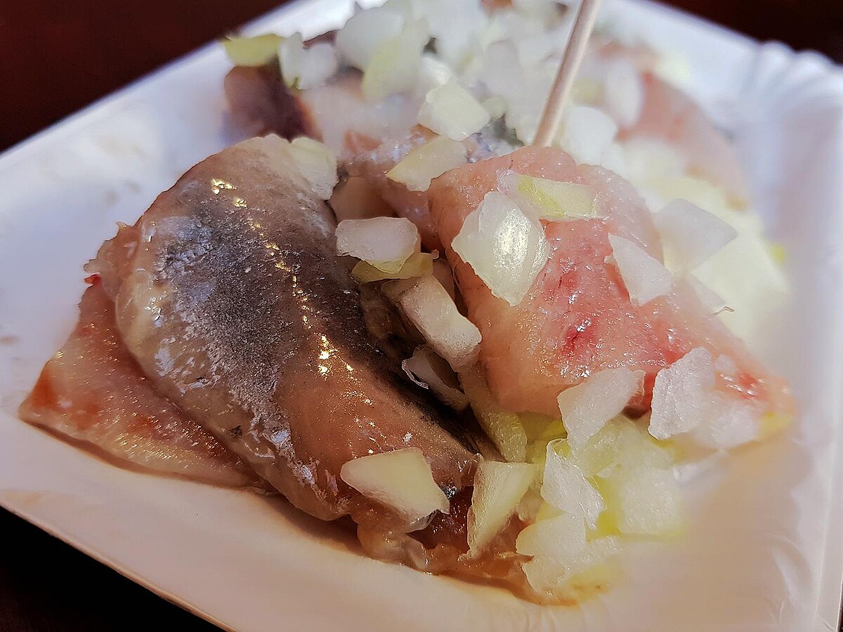 不過,既然來到世界最美麗的時尚市場,荷蘭有三樣美食不得錯過,一是各式口味的起司(乳酪);一是地方色彩超級濃厚的「生鯡魚」;另一個則是號稱世界上最美味的「蘋果派」甜點了!說到荷蘭的起司,大部份的人對它都不陌生,質地好,而且價格相便宜;不過,相較於起司,同樣是荷蘭人最愛的國民美食「生鯡魚(Haring)」,大部份的遊客們對於它的美味則都是敬謝不敏居多。事實上,這生鯡魚並沒有想像中的不美味,反之,這擁有700多年歷史的傳統美味,就是簡單的鹽漬生魚美味。此外,它搭配生洋蔥或醃黃瓜,運用新鮮洋蔥的辛辣味來提魚的鮮味,由微鹹來平衡辣嗆味,一口下去可以同時吃到不同層次的口感,相當有趣和刺激;當然,來荷蘭一遊,絕對不可以錯過的就是名氣最響亮的美食「蘋果派」!
