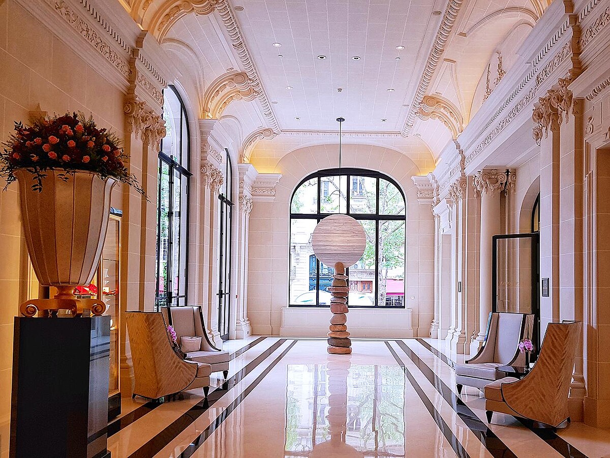 而半島飯店在接手後,非常慎重如何在保存和創新;品味和個性時尚中找到平衡,單是翻修酒店就花了六年半的時間,而且特別重視建築歷史的修繕工法,單是飯店外牆就動用了20名專修石匠的大工程,直到2014年才正式開幕。算算時間,在遍城都是舊飯店為主的巴黎,她也還算是一家新的頂級飯店!對了,我最喜歡她的地理位置,出門就有地鐵站,而且知名的「凱旋門」就在前方幾百公尺處。