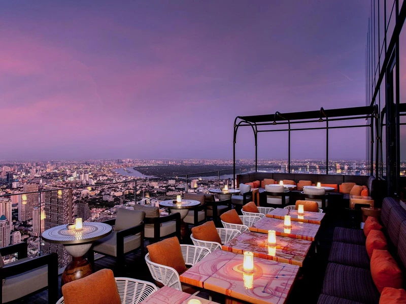 而位於76樓的「Mahanakhon Sky Bar」餐廳則是目前泰國最受矚目的餐廳。因為今年7月才開幕,而且整個餐廳分成3個不同風格的區域,一個是樓中樓式的高挑空間主餐廳;一個是户外露天式的花園餐廳;另一個區域則是可吸煙的户外景觀餐廳。而整個餐廳的空間設計則以「旅人」的巧思為主軸,除了有歐洲的法式貴族優雅氣息外,還有非洲和南美洲的狂野小驚喜。此外,空中花園的自然生態和都會景觀的交錯,則把東方的傳統生活哲學和摩登現代融合的過去與未來,做了一個延展的美好呈現。因此,食客們只要把餐廳繞一圈,穿梭三個主題空間,也等於像是旅人般環遊了世界一回,相當有趣。
