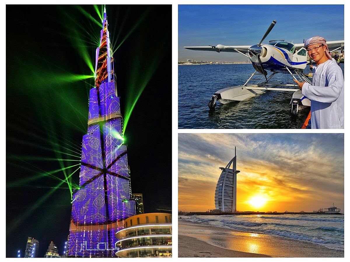 這個8天7夜航巡在波斯灣和阿曼灣之間的郵輪度假行程,一窺穆斯林世界的奢華夢幻是最大的賣點!杜拜本身的特色就很多,無論是要到828米的世界第一高建築物哈里發塔(Burj Khalifa)去見證人工智慧的結晶;還是到著名地標杜拜相框(Dubai Frame)或帆船飯店(BURJ AL ARAB JUMEIRAH)打個卡;到什麼都有的杜拜購物中心(The Dubai Mall)血拼一番;又或是到舊城區的香料市集、黃金市集、杜拜博物館等來趟歷史古城之旅等,都有趣,也都讓人感嘆通通都想去,偏偏時間有限!因此,最後我選擇了一趟非常別致的「水上飛機」行程,從空中鳥瞰整個杜拜灣,用不同的視野和角度,把杜拜的奢華一次收入眼底!