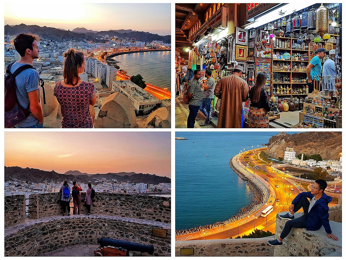 至於阿曼,這裡是「天方夜譚」裡辛巴達的啟航之地,有著神秘面紗和童話故事的奇幻色彩。郵輪停泊的地方是首都馬斯喀特東北方的港都馬托拉,這裡可以選擇郵輪的靠岸行程,利用半天的時間飽覽著名的阿曼大清真寺、阿姆蘭皇宮、博物館等景點,又或是在自己在馬托拉港口附近輕鬆散步之旅。因為這裡就有傳統市集,裡面小店販售的物品五花八門,從很觀光客需求的傳統服飾、阿曼帽子、彩石項鍊手飾、阿拉伯彎刀、在地自產「乳香」、燈壺等,好買、好逛,還可以感受到阿曼文化和生活縮影,相當有趣;而登上港口的要塞碉堡,斑駁的石牆加上18世紀英製鑄鐵加農砲,滿滿的歷史味。爬到最高點,映入眼簾的是錯落的白色、米色大小樓房,在染黃的山色襯托下,隨著空中播放的穆斯林祝禱聲中,就把人帶進了電影的畫面中,相當迷人。