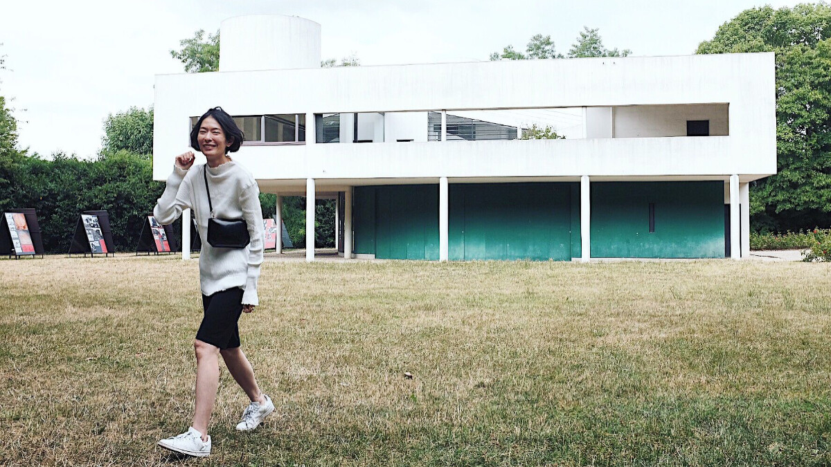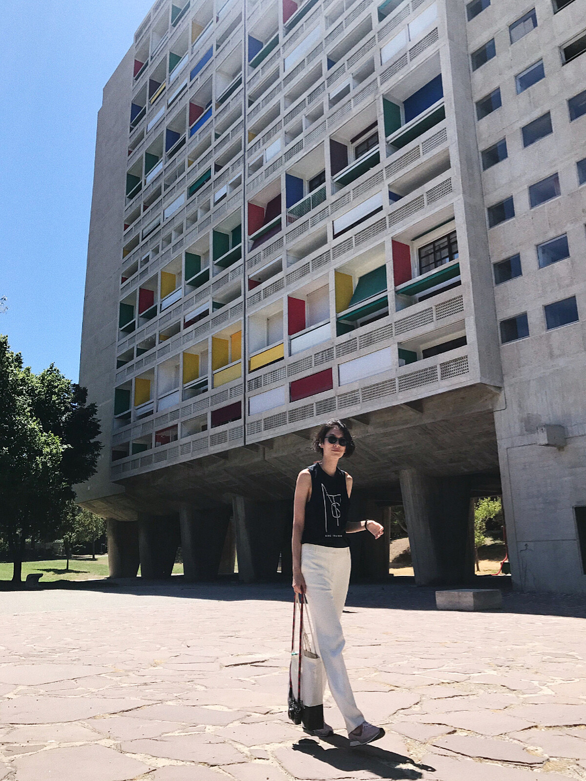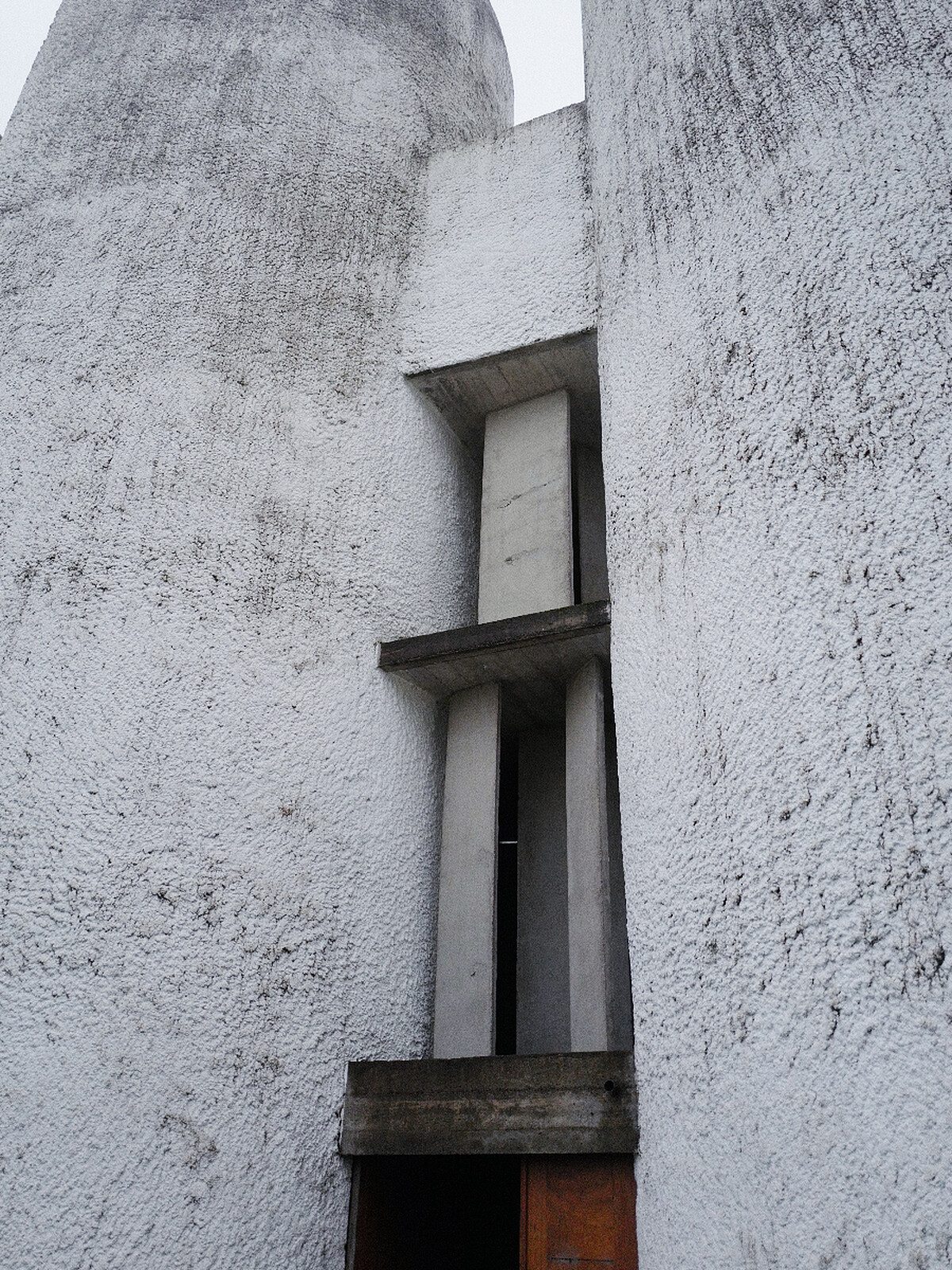 講到這裡,應該很多人對柯比意和廊香教堂一知半解,在此容許我介紹,讓大家認識這位偉大的爺爺。他是瑞士裔法國人,是建築師,同時也是都市規劃師、室內設計師、雕塑家、畫家,是20世紀最重要的建築師之一,致力發展功能性建築與牆柱分離的結構,推行新建築五項原則,對於當時以及往後世界各國的建築大師,有很大的啟發,安藤忠雄先⽣生也是其中一位。最著名的代表作是薩伏伊別墅,而廊香教堂是他晚期作品,被認定為最傑出的作品之一,也是20世紀教堂建築的一個重要典範,在2016年正式被列入世界文化遺產。所以在我學生時期,就對柯比意大師的作品非常嚮往,希望有一天能環遊世界時,也能朝聖它們;幸運的我,也因為模特兒這份工作,完成了我人生許多的心願。