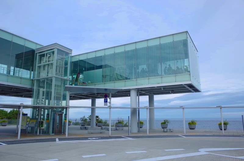 從車站延伸出來的一座咖啡廳「Sea BiRDS CAFE」,同樣也是用落地玻璃窗建造,用餐座位更設計成直接面向廣闊的太平洋,彷彿是漂浮在海面上的咖啡廳!
