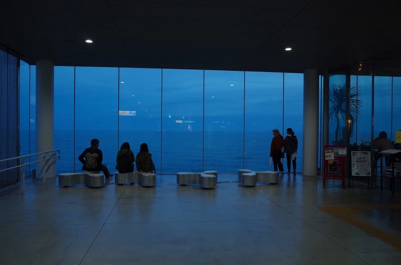 日立站是由出生於日立市的知名建築師妹島和世所設計的,2014年還榮獲鐵路業界的國際大獎布魯內爾獎(Brunel Award)的最優秀獎!車站採用玻璃牆面讓遊客感受自然光影,加上眼前整片海景被譽為漂浮在海上的玻璃車站!