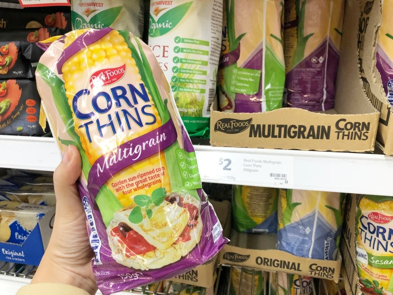 如果真的嘴饞很想吃餅乾,卻又害怕一般洋芋片、零食熱量太高時,就可以考慮Real Foods Corn Thin玉米餅了!利用玉米烘烤而成,吃起來一樣有酥脆口感,又帶有穀物香氣,但熱量降低許多。