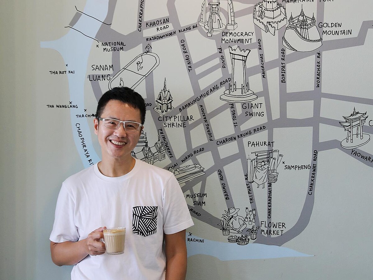 而下一個街口,當咖啡控遇上了老城新貌的文青咖啡館,說什麼都要來上一杯咖啡。只是,這咖啡館二樓的空間有著時空魔法,我們咖啡才喝上一口,就不由自主的拍起了個人寫真集,相機咔嚓、咔嚓不停。就這樣,我們看著光影、喝著咖啡、聊著天,都同意這曼谷老城區的早上,連閒逛都是一件迷人的事啊!至於這只有15間房的精品飯店 SALA Rattanakosin,讓我們走進了時尚雜誌的浪漫,也讓我們遇見曼谷不思議的驚艷。更深深地相信,「不是不到,只是時機未到」的道理,原來多年遲遲沒有機會入住,一切都是上天有特別安排的緣故。喝一口咖啡,對面著牆上繪著的曼谷老城地圖,嘴角就這麼微微的上揚。