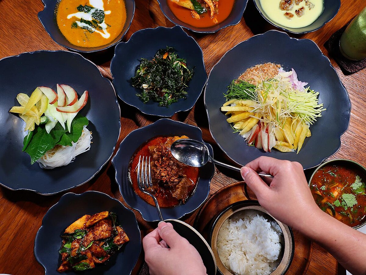 而當天我們挑選的幾道菜式,無論是米線和手工魚丸烤過後加入椰奶醬湯 Kanom Jin Sao Nahm;熟悉的人氣美味馬沙曼咖啡牛肉 Massaman Nuea;或是南部知名特色美食咖啡海鮮煲 Ngob Talay等,你都可以嚐到熟悉的味道中細緻的料理手法,加上一些食材上的小巧思,再由小小的驚喜中感動到家常美味如何華麗轉身的米其林一星驚艷,非常喜歡和推薦!