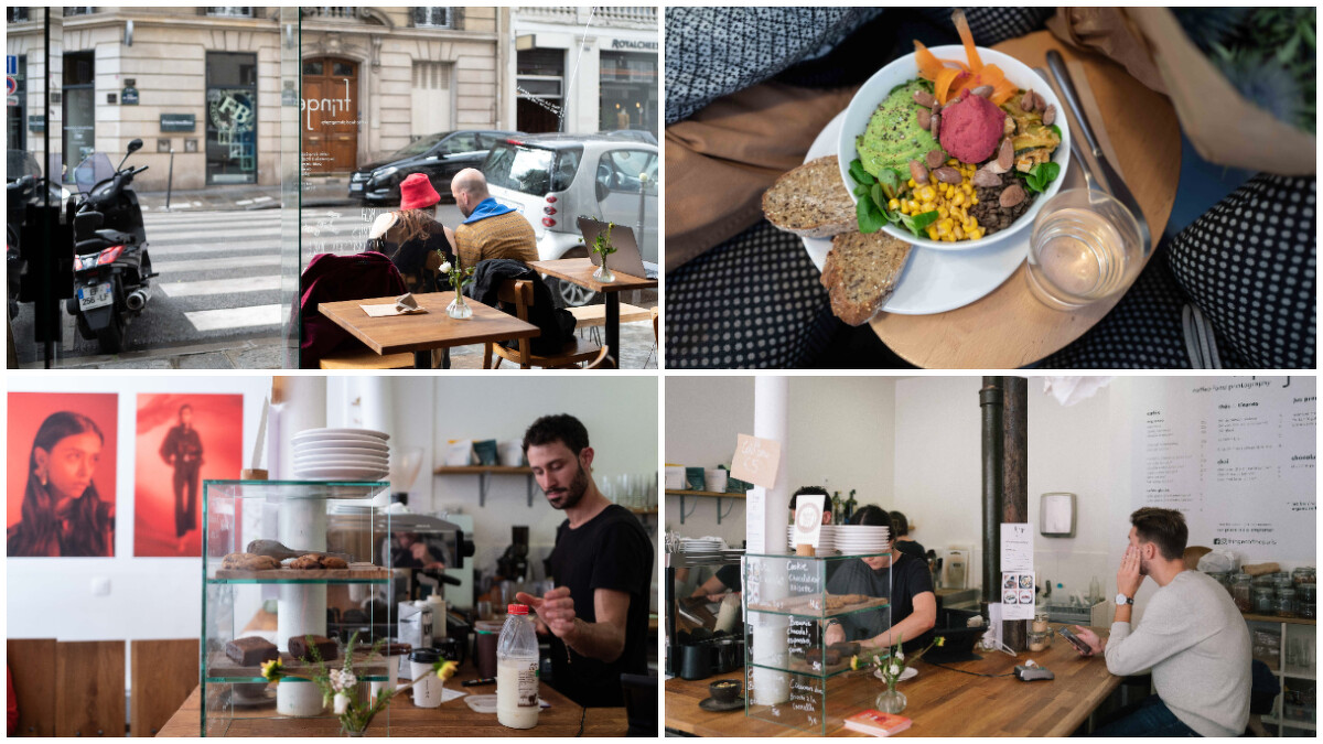 老闆是位曾在台灣居住過的美籍攝影師Jeff,後來移居到巴黎生活多年,是我幾年前再回巴黎工作時,經由朋友介紹認識的,而我們第一次見面是約在一間很有名氣的咖啡店Ten Belles,他除了跟我分享很多巴黎生活之外,也介紹了很多巴黎咖啡店與轉變。因為喜歡咖啡文化,希望巴黎有咖啡、茶,並提供健康輕食能選擇的地方,於是籌備了許久後,在2016年開了這間結合攝影空間的咖啡店,而食材直接從生產者獲取,所以新鮮且環保,這也是為什麼我推薦Fringe的原因。