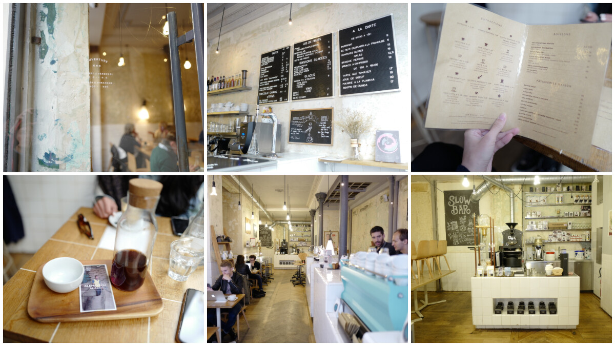 第一次到這家店時,覺得風格很特別,明亮的北歐風格,但保留了黎老房的牆面與天花板,白色方格瓷磚的吧台與原木方格桌面,跟其他的巴黎咖啡店差異很大。Fringe老闆Jeff告訴我,這家咖啡店有得獎過的專業咖啡師、不同沖煮咖啡的選擇,以及自己烘培咖啡豆的優勢,因此在巴黎咖啡界有舉足輕重的地位。創店人是法國的Antoine Nétien和來自澳洲的Tom Clark,在左岸的貴婦百貨Bon Marché附近成立了這家店,雖然在一條不大的馬路邊上,但以高品質與溫潤口感的咖啡為主,再加上有提供輕食,因此中午用餐時間時常客滿。