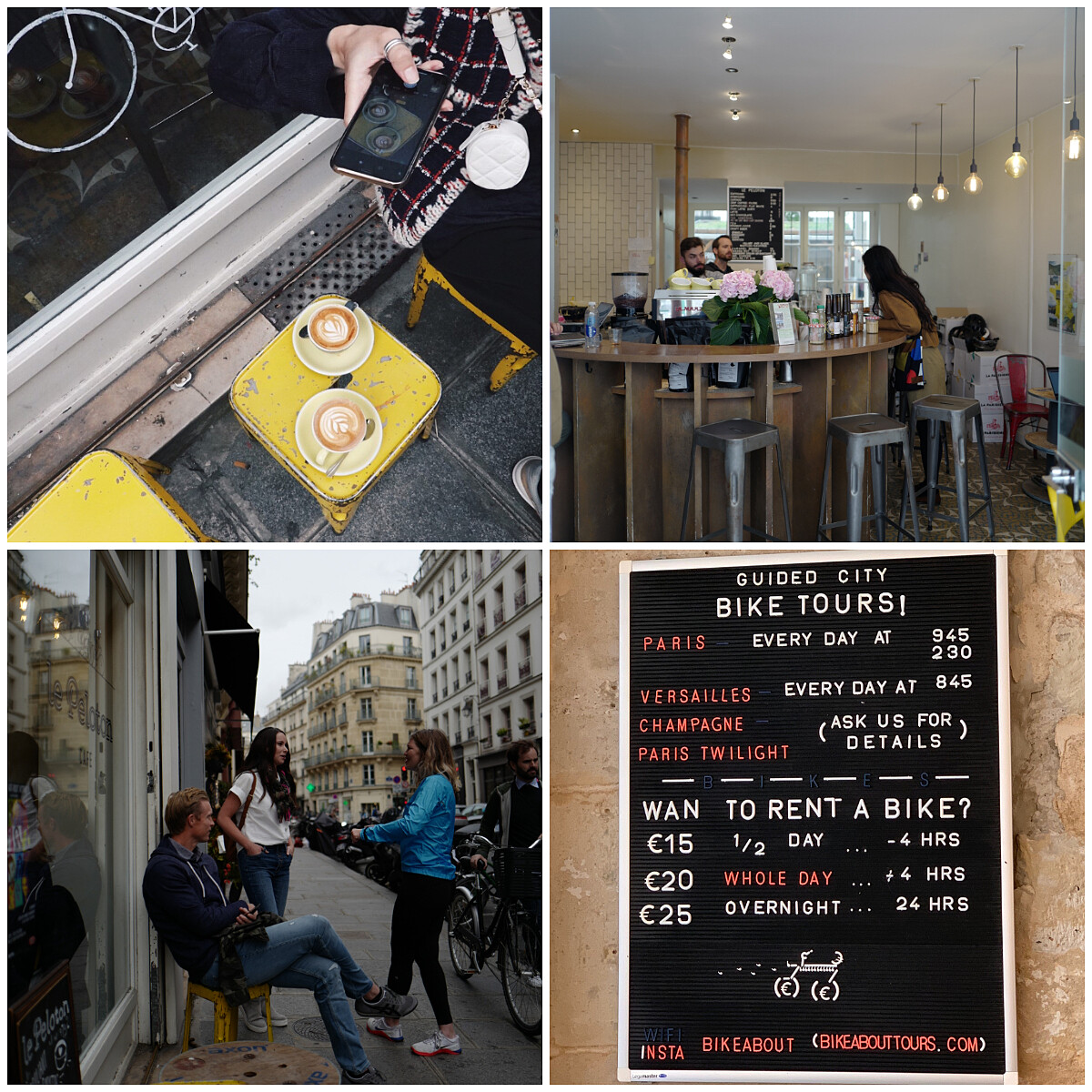 這家店是我無意經過的,本來是陪朋友要去朝聖潮流店,在路上經過它,發現有很多腳踏車停靠在店門口,於是有嚴重好奇心的我,就下車探個究竟;它是一家提供腳踏車觀光行程與租借的咖啡店,讓喜歡騎車或是體驗透過騎車的方式拜訪巴黎,這會是一個不錯的選擇。