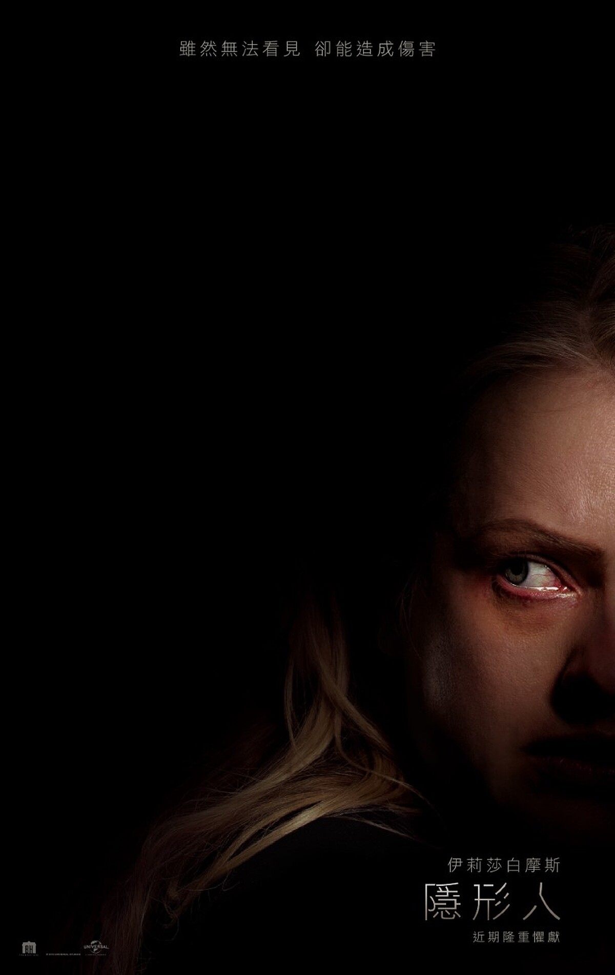 將於2/28三天連假檔期上映的《隱形人》,描述女主角長期與一名富有的科學家有著一段充滿暴力陰影的危險關係,後來好不容易才靠著姊妹與好友的幫助,自對方身邊順利逃脫。但不久後,便傳來了科學家自殺身亡,並留給她一部分遺產的消息。詭異的是,從那時開始,女主角卻總是在空無一人的地方,感到一股死盯著她不放的視線。而當一連串詭異巧合引發了駭人意外後,讓她開始懷疑對方只是假死,其實早就研發出成為隱形人的方式,打算對她不利……