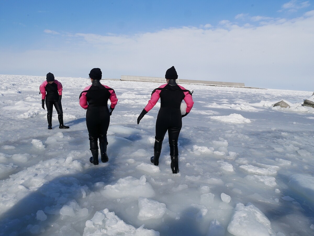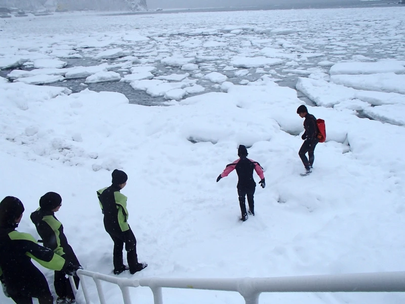 「流冰漫步」的活動只有鄂霍次克海岸的網走和知床兩個城市可以體驗。MiKU事前在網路上申請之後,當天按約定時間直接到店集合。在天寒地凍的北海道走在路上都要把自己包緊緊的了流冰漫步要帶什麼裝備才好呢?其實意外的很輕鬆什麼都不需要準備,店家會提供保暖的乾性防寒衣和靴子,防寒衣裡MiKU只穿了一件薄長袖卻一點都不感到寒冷!下半身最好穿行動方便的長褲和長襪。