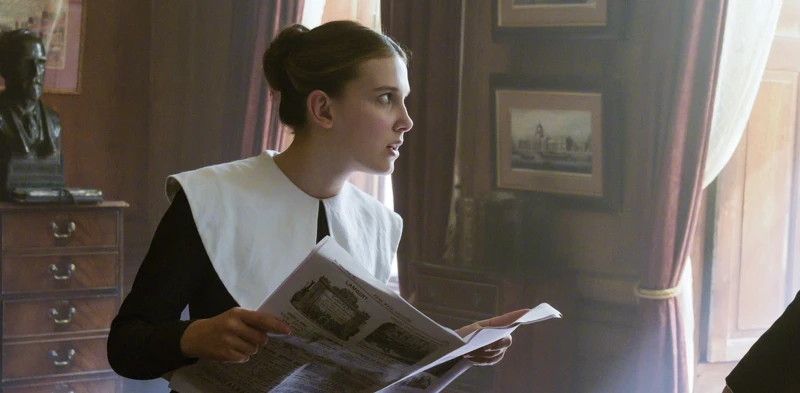 不過,《天才少女福爾摩斯》最大的重點,當然仍非艾諾拉一角莫屬。米莉.芭比.布朗在本片中可說魅力四射,充分展現出古靈精怪的可愛氣息,尤其不時打破第四面牆,與觀眾對話的相關橋段,更幾乎成為了本片娛樂性的最大來源。