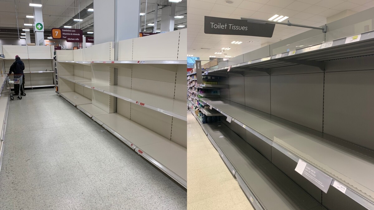 在這個全球文化首都之一、國際訪客數最多、物資供應線前端的大城市倫敦,都能出現物資短暫缺乏被買爆的情況,還真是前所未見。但其實我能理解這就是一種爆發性的心理作用,衝擊來得太快、無法精確分析狀況只能先下手為強的自我防衛模式。