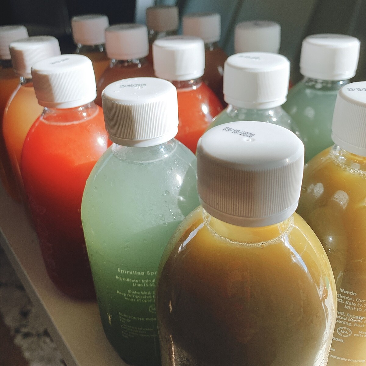 另外我更認爲在家防疫是嘗試新健康飲食的良好時機,以我為例之前一直耳聞在這裡風行一陣的果汁輕斷食療法(Juice Cleanse),短的三天長的可以五到七天,每天五瓶冷壓果汁,讓平常過油過膩的身體能夠有機會大掃除一下。平常因為週間要工作、假日想出遊,一直都找不到一段時間可以讓自己斷電,畢竟他們都有標語警告你可能一開始嘗試會整天委靡不陣(還不能攝取咖啡因),所以在二封的時候我特地請了幾天的假,利用不能外出的休假在家好好排毒(結果真的在床上躺了三天有夠糜爛)。