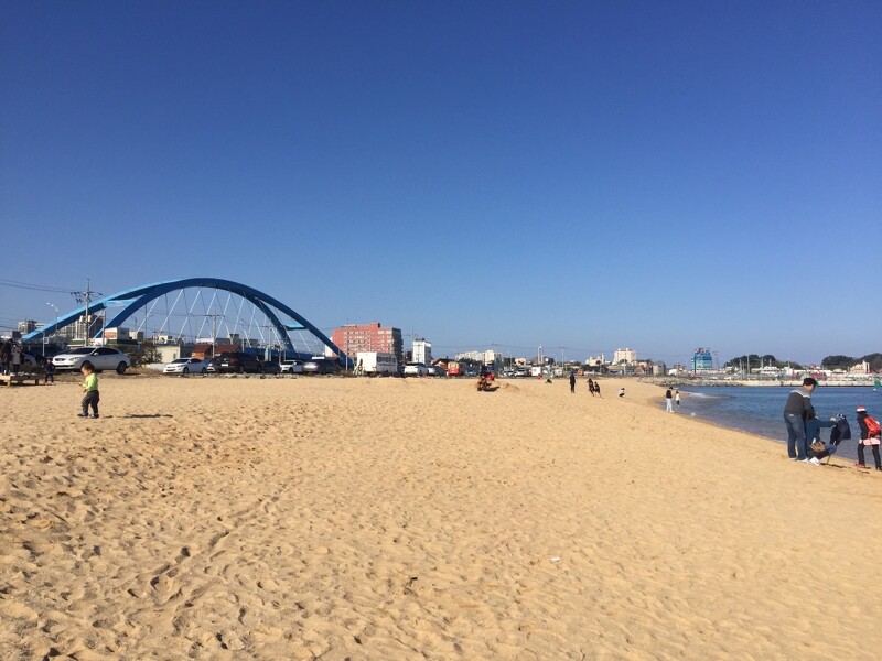 另一個必吃的束草美食則是오징어순대(魷魚米腸),魷魚米腸是束草的代表鄉土料理,據說是由一位在大浦港經營生魚片餐廳的金海生女士(音譯,김해생)在魷魚大豐收的時候,將剁碎的蔬菜、粉絲和肉末塞進魷魚裡後蒸熟而誕生的料理,現在的魷魚米腸不是用蒸的,而是以沾滿蛋液後下油鍋煎的方式料理,Q彈的魷魚塞滿了米飯和蔬菜調製成的內餡,加上煎得赤赤(台語)的蛋液,讓人忍不住一口接著一口吃下肚,是我二次到訪束草時最期待的料理了。