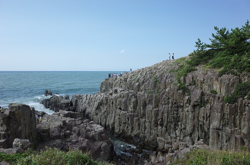 東尋坊的火山岩被分類為安山岩,其斷面可看到自然形成的5~6角形的安山岩柱狀節理,斷崖兩端總長度約一公里、最高處的海拔高度約25公尺,如此罕見的地理景觀目前在全世界僅有三處!