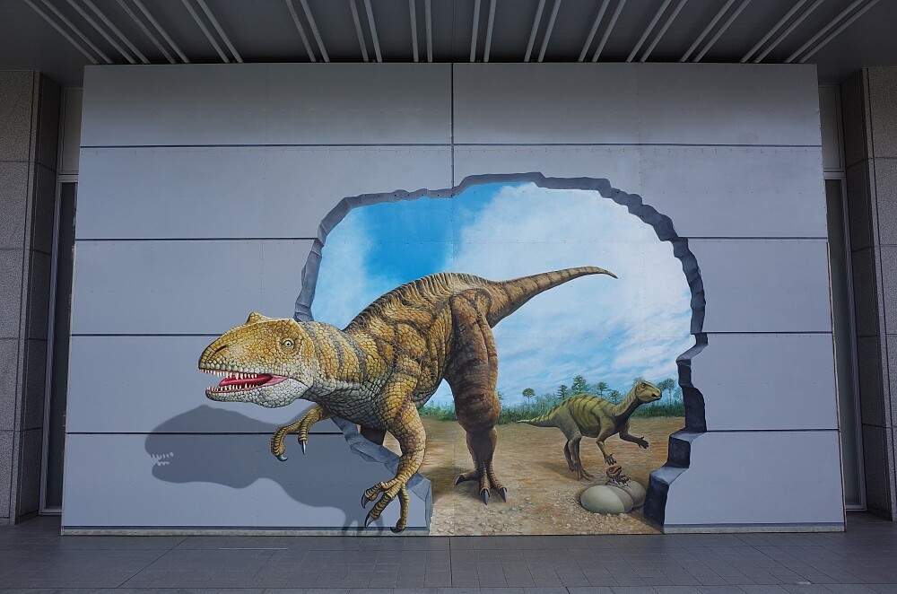 有恐龍王國之稱的福井縣,一出福井車站就能看到栩栩如生的恐龍模型迎接遊客的到來。挖掘歷史可追朔到1982年,當時在縣內勝山市的岩層中發現鱷魚化石後,隨即展開考古挖掘活動,卻意外發現恐龍的牙齒、骨頭及腳印等化石,並且為這些新種恐龍賦予了新學名。