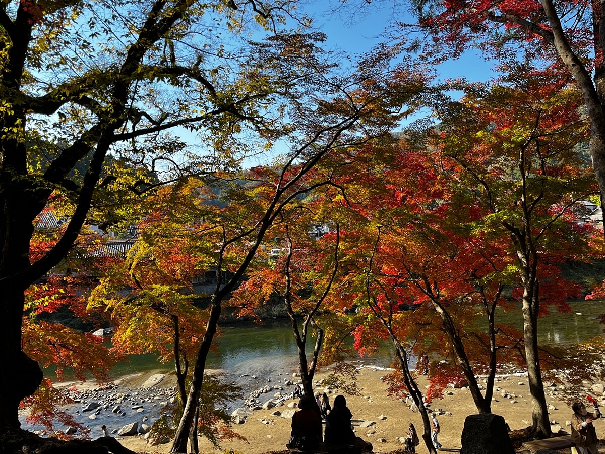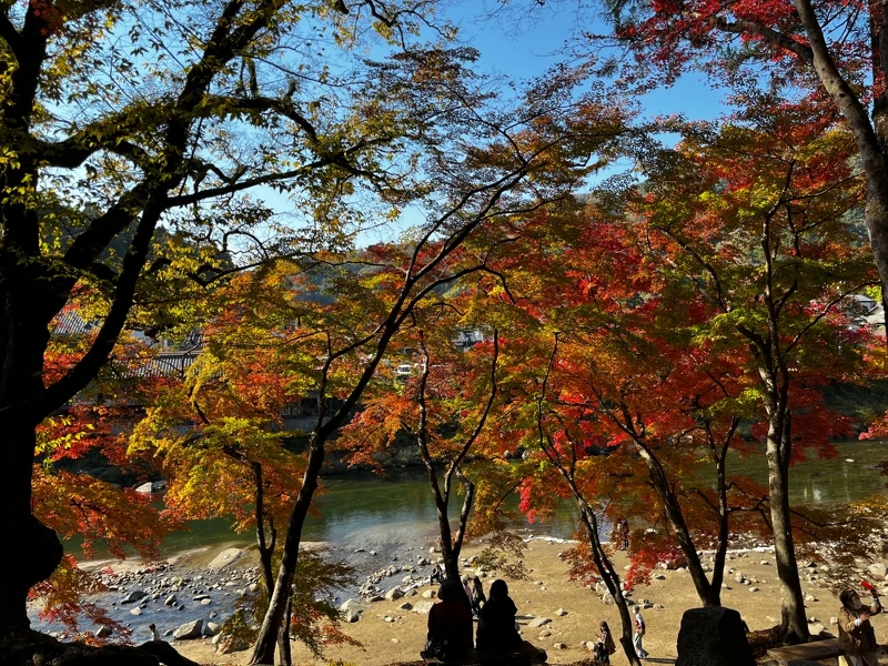 站在巴橋上可一望飯盛山全景,山上色彩絢爛的楓紅倒映在巴川上,隨手一拍都是美麗的風景畫。