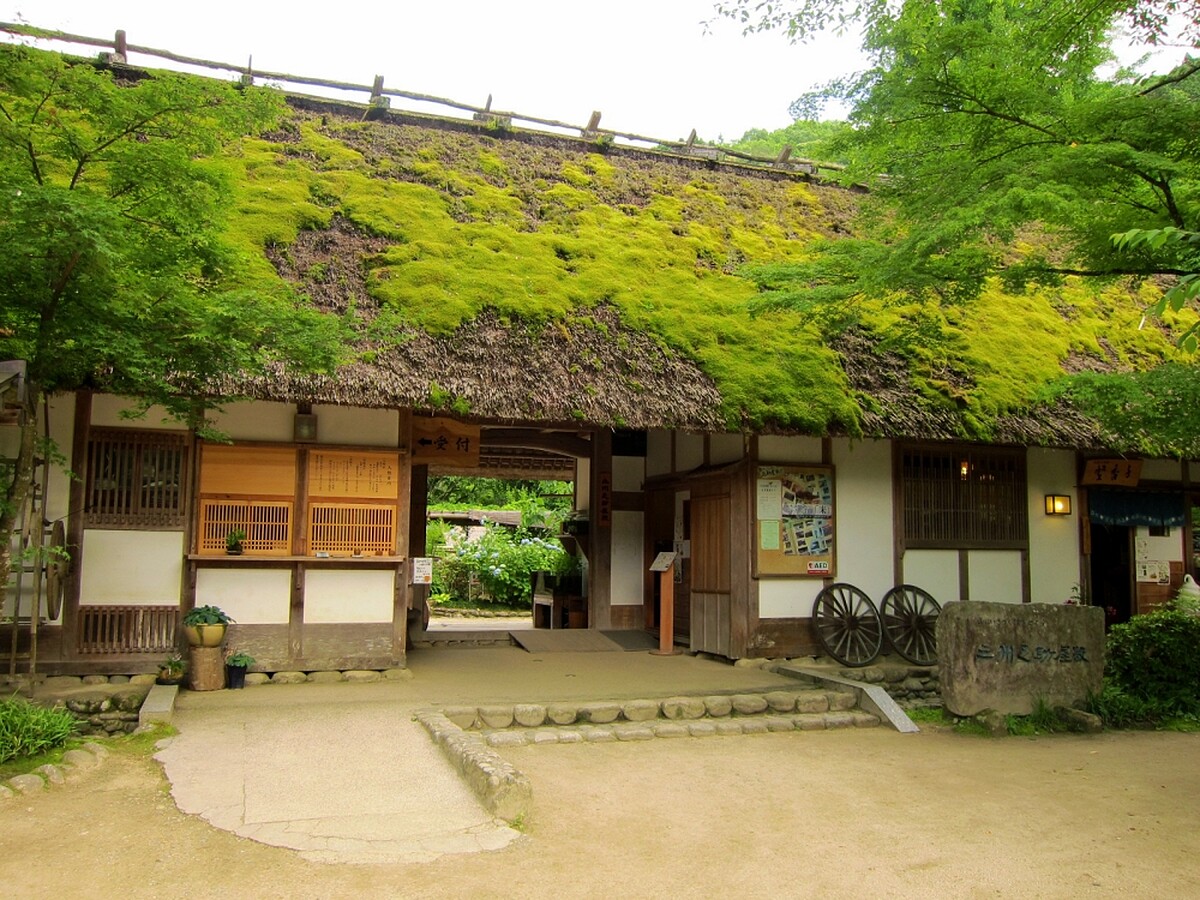 於1980年開館,在約有3千平方公尺的場地內重現過去足助地區的富農宅邸,裡面可以看到長屋門、主屋、竹屋等傳統茅草屋,每間屋子內進駐工藝職人,當時農家的生活原則為「生活必需品自己動手做」,所以在屋子內不僅可以見識到職人實際演示燒炭、製作鐵器、織布、藍染等傳統手工藝,甚至還可以親身體驗試做,可以說是活生生的民俗博物館呢!