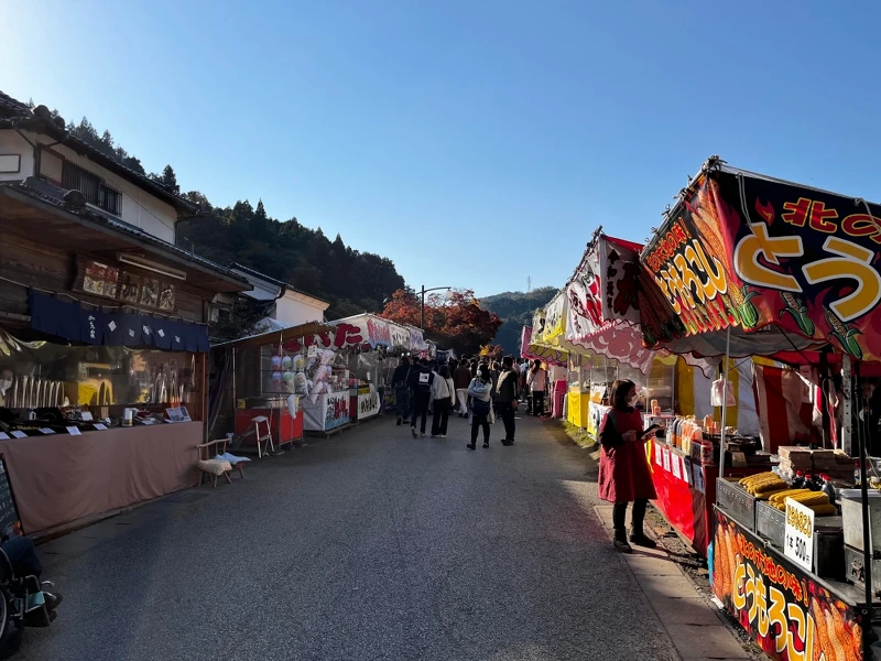 每年11月香嵐溪會舉辦紅葉祭,此時不僅有美食攤販讓遊客大飽口福,更有遊行、表演活動等,一整天都很熱鬧~我這次挑了11月中某個平日到訪,中午過後卻是滿滿人潮,如果選擇假日來訪要有塞車的心理準備。