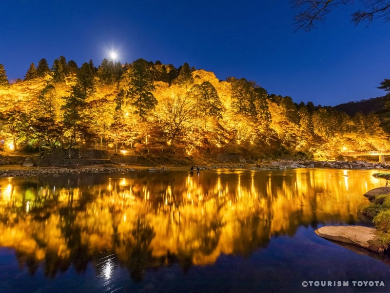 說到愛知縣大家比較熟悉的就是名古屋市,其實還有一個大家可能沒去過卻一定聽過的地方-豐田市。是的,就是那個聞名世界的豐田汽車TOYOTA誕生地。在豐田市內有個享譽全國的紅葉名勝「香嵐溪」。除了有夜楓看,還能在民俗博物館體驗手工藝、沿途品嚐攤販美食、甚至漫步在老街讓時光倒流回到江戶時代。