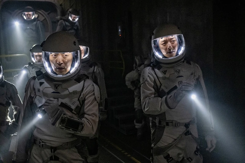 也因為如此,《寧靜海》前半段最有趣的地方,在於除了裴斗娜飾演的生物學家外,其餘角色幾乎都難以叫人安心,不確定他們的正邪立場。甚至包括孔劉飾演的探測隊隊長在內,看起來也同樣隱藏了什麼秘密,因此使故事始終散發著一股緊張不安的氣息。